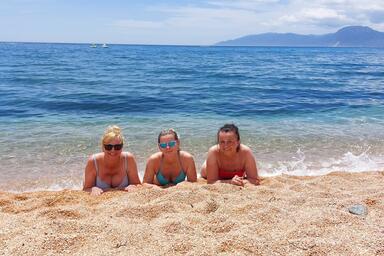 - hotel je přímo u oblázkové pláže, lehátka a slunečníky zdarma, osušky oproti záloze)