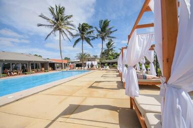 Velmi příjemný, rozlehlý, komplex dřevěných bungalovů v typickém místním stylu a jedné zděné dvoupodlažní budovy leží v nejkrásnějším místě úžasné dlouhé písečné pláže, přímo u městečka Santa Maria. Krásné koupání a slunění, rozlehlá zahrada je ideální pro rodinnou dovolenou. Hotel je součástí portugalské hotelové sítě, známé pečlivostí poskytovaných služeb. V posledních letech prošel hotel modernizací bungalovů, restaurací, bazénů a recepce a došlo také k výstavbě dalších pokojů v podobě patrových domků. Jde o dlouhodobě prověřenou značku kvality na Kapverdských ostrovech. Výborná poloha je skvělou kompenzací za jednodušší ubytování.