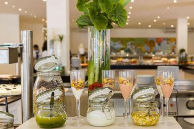All Inclusive: 10.00–24.00, zahrnuje snídaně, obědy a večeře formou bufetu, během dne lehké občerstvení, neomezené množství rozlévaných nealkoholických a alkoholických nápojů místní výroby. Lze čerpat v místech a časech určených hotelem.